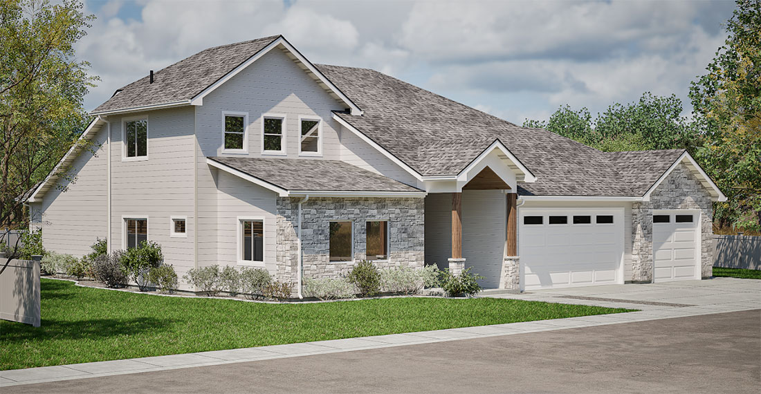 The roof's subtle gables enhance the home’s character while offering optimal drainage and insulation, ensuring the house remains energy-efficient. Ideal for modern living, this home is designed with plenty of room for customization, making it an excellent choice for those looking to bring their own unique vision to life.