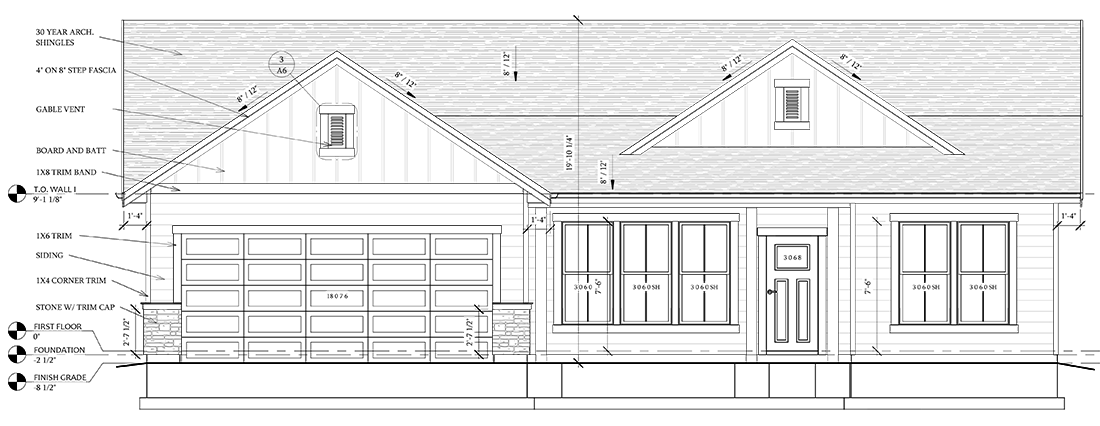 This charming single-story home offers a blend of modern and traditional design elements. Its steeply pitched roof and clean, symmetrical layout give it a classic appeal. The two-car garage is accented by stone columns, while the covered front porch adds a welcoming touch. Large windows bring plenty of natural light into the home, enhancing the sense of openness. This design is ideal for homeowners seeking a functional, efficient, and stylish residence with a timeless look.